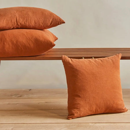 Quick Shop $140.00 SOIL TO STUDIO: SYRA - HAND BLOCK-PRINTED LINEN PILLOW ROSEWATER 18" x 18" Quick Shop